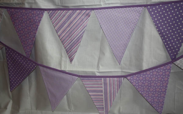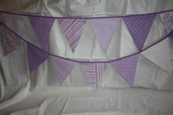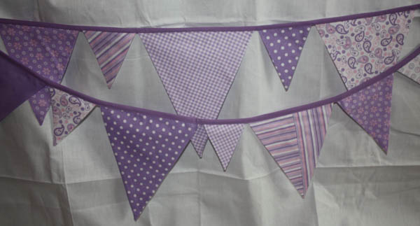- Alle Fähnchen sind in Lila-Farbtönen mit verschiedenen Mustern: