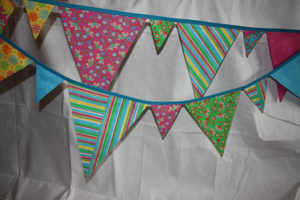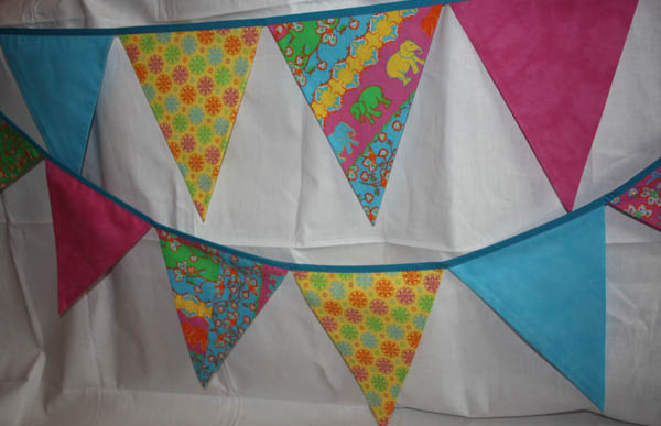 - Diese Fähnchen sind eine farbenfrohe Zusammenstellung aus kräftigen Blau, Rosa und Gelbtönen.